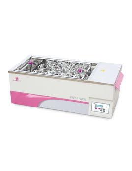 The latest ZWY-110X series reciprocal water bath shaker combines unmatched reliability and durability. It delivers superior temperature control and uniformity with a smooth shaking motion. Bath temperature is controlled to an accuracy of ±0.1°C by a P.I.D microprocessor controller for optimum reproducible bath conditions. Dual thermostats provide optimum protection for your work and water bath. The steeply gabled lid and inward-sloped tank rim allow condensate to drain neatly back into the bath, preventing condensate from dripping onto the samples.
